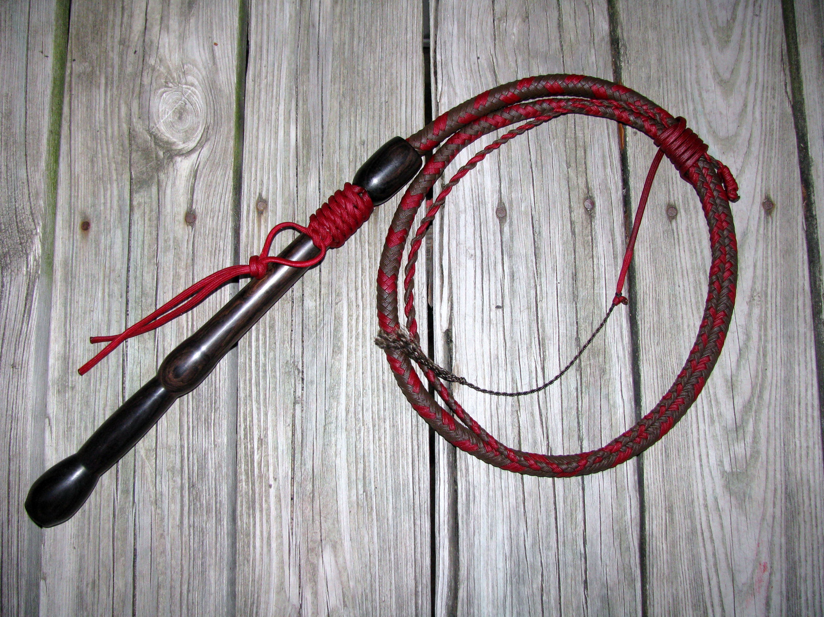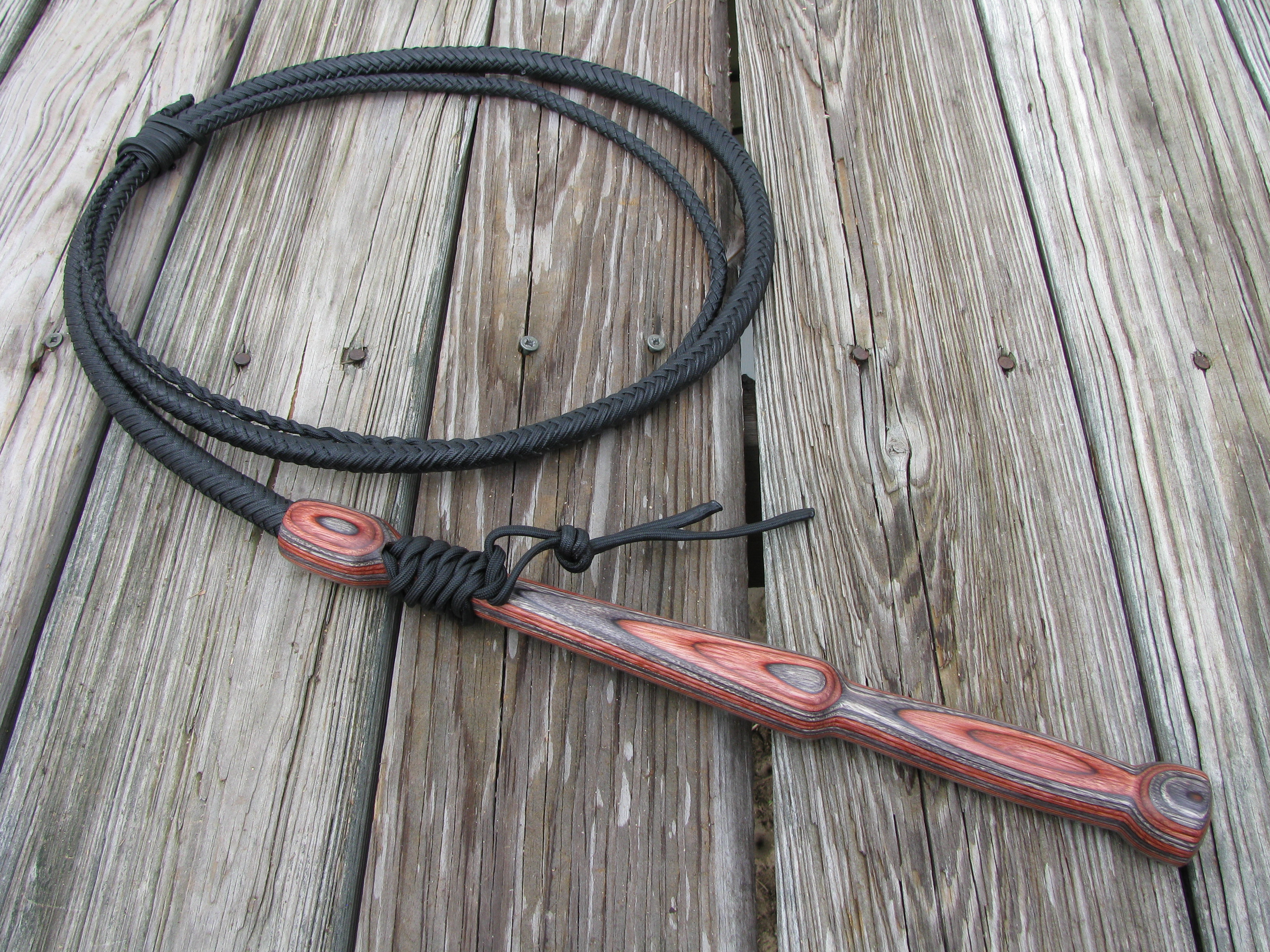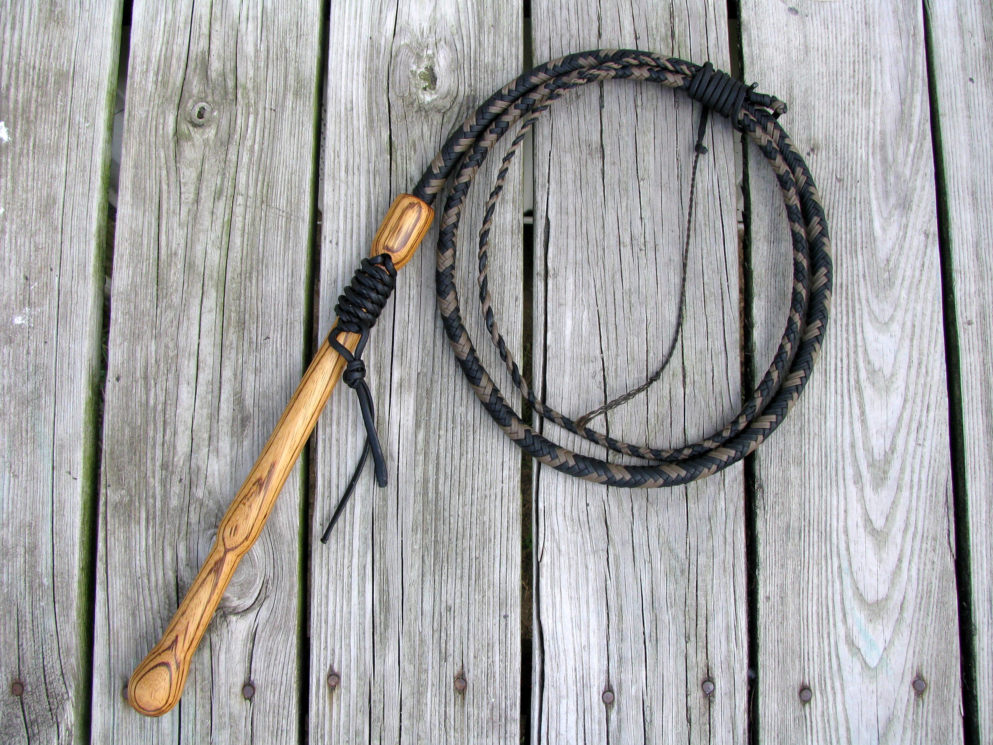 Handles from exotic wood and stratabond for an additional fee. Some exotics are fairly cheap and others can be very expensive, so please contact me for details and a quote. My Florida cow whips are used by Robert Arrington of Deer Meat For Dinner, by rodeo clown extraordinaire Mike “Scooter” Smith, at the Fort Worth Stockyards, at Arabian Nights Dinner Show, and by working cowboys all over the U.S.A.